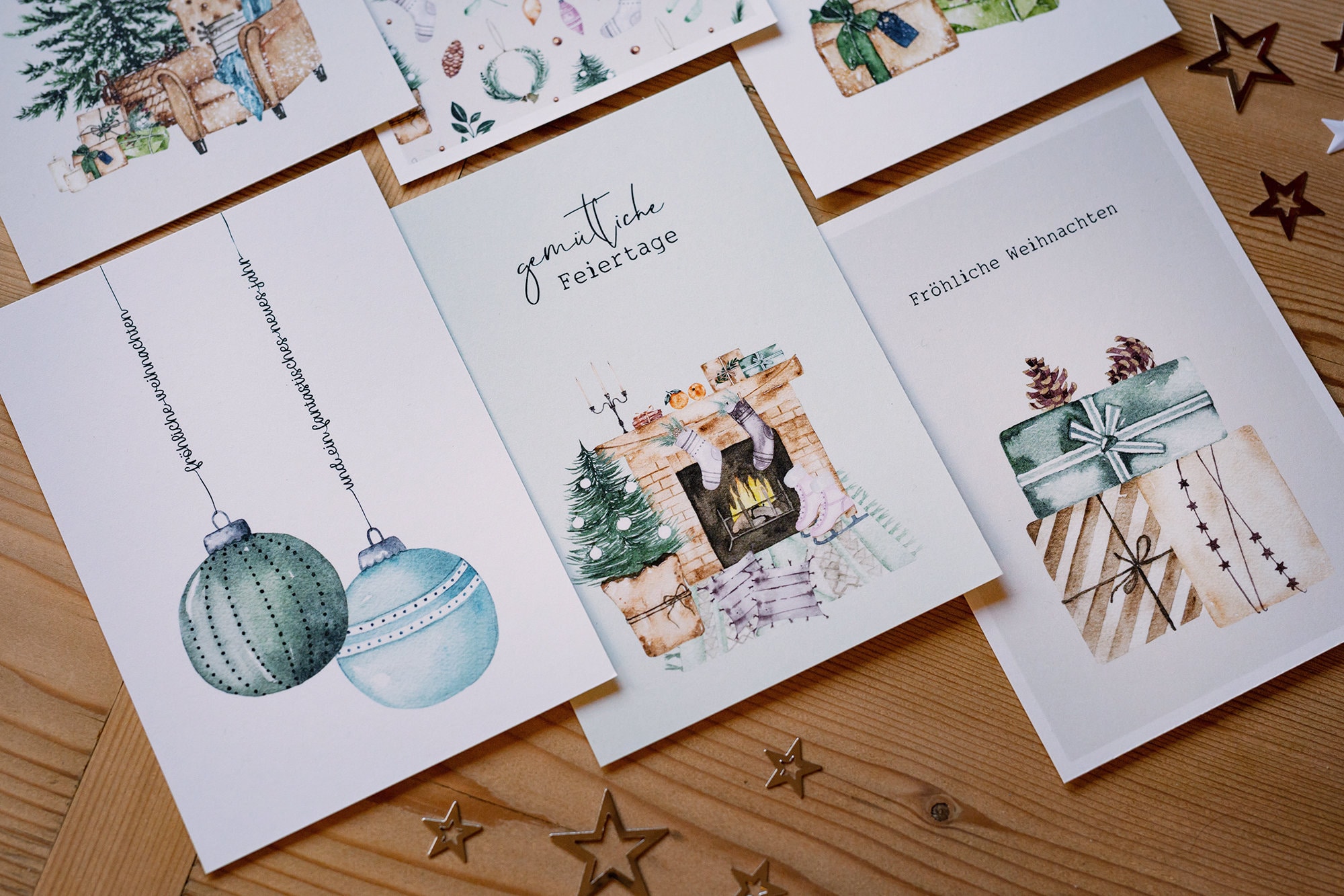 This beautiful set contains 8 high-quality Christmas postcards with different motifs in a subtle watercolor look—simply hygge! The cards, available in portrait and landscape formats, have a minimalist, romantic feel and are a perfect fit for vintage, boho, or country-style decor.