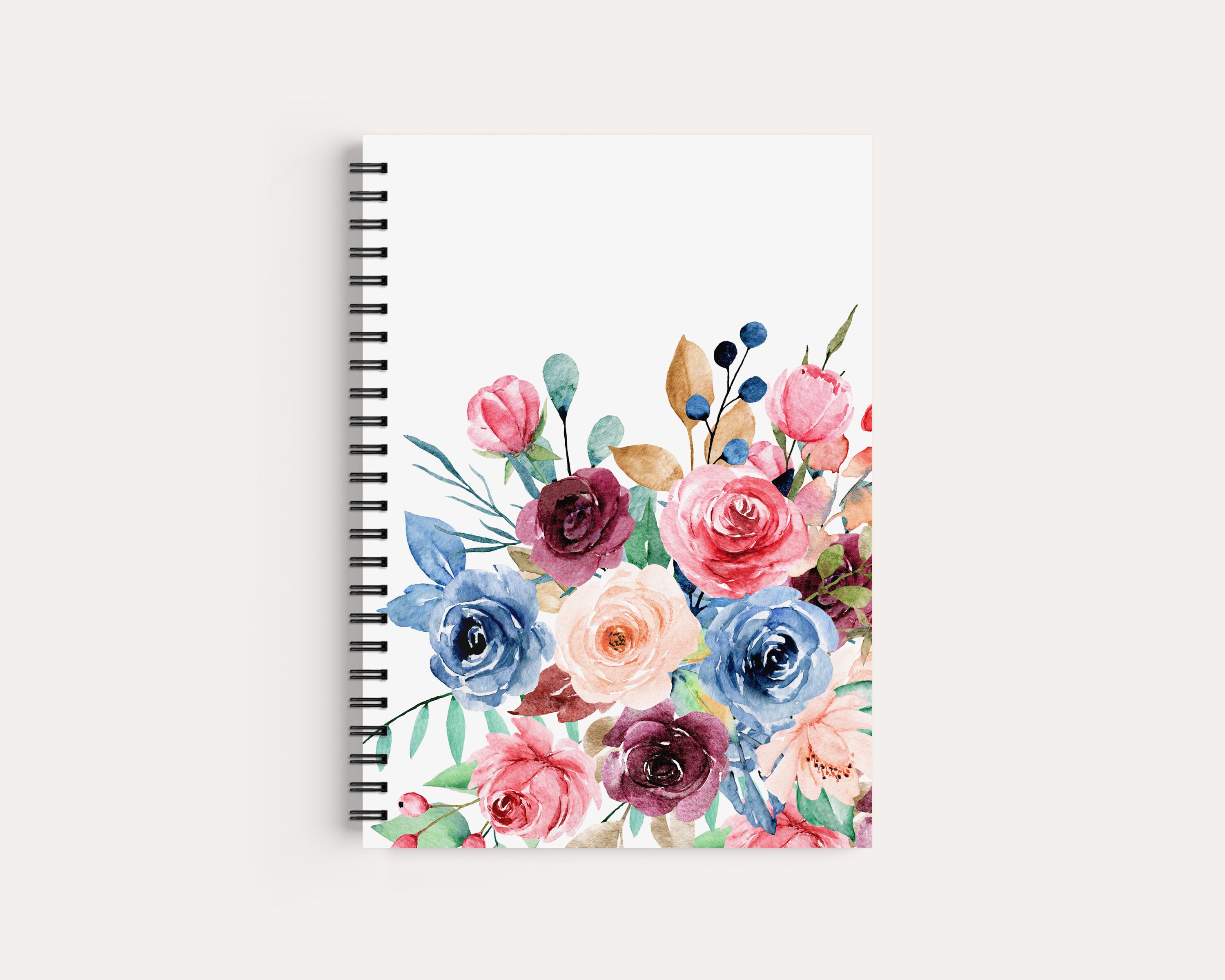 The cover is made of 300gsm designer cardstock with dreamy watercolor roses in shades of red and blue and can be customized to your liking. You can see a selection of fonts in the last product image. A logo or other graphics can also be printed, making the book a personal and personalized gift.