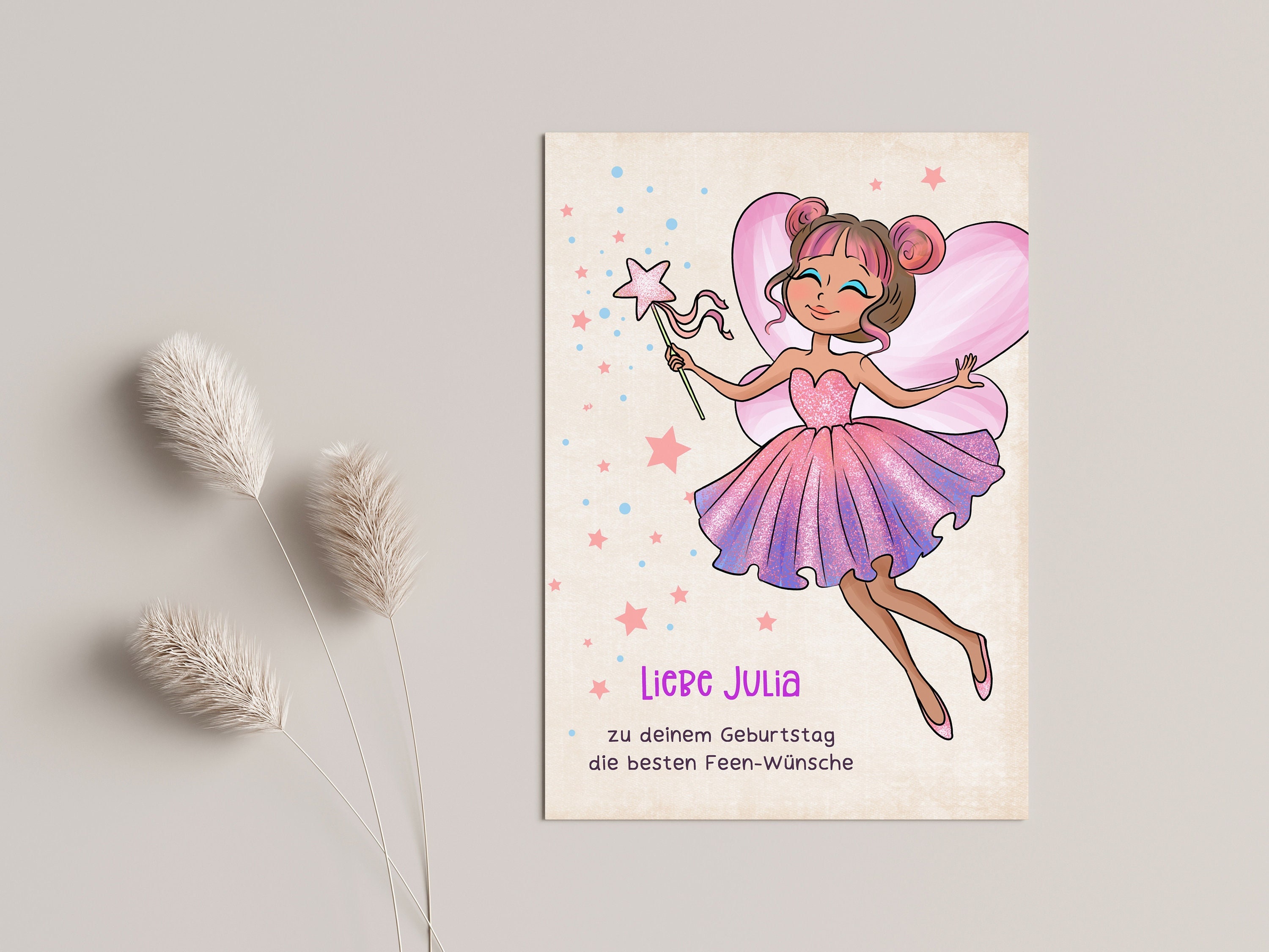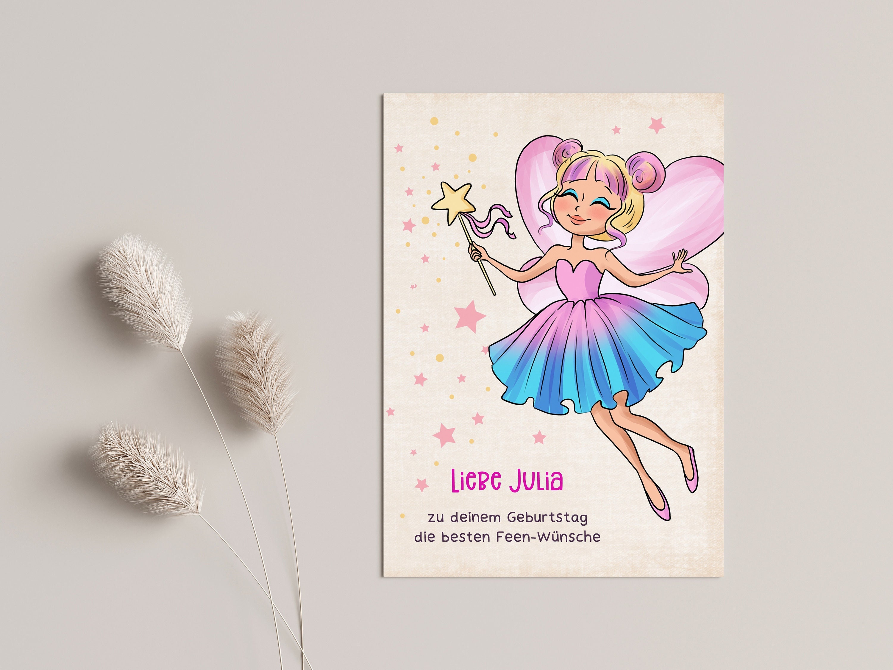 Folding card "Fairy Greetings" personalized with name - Birthday card