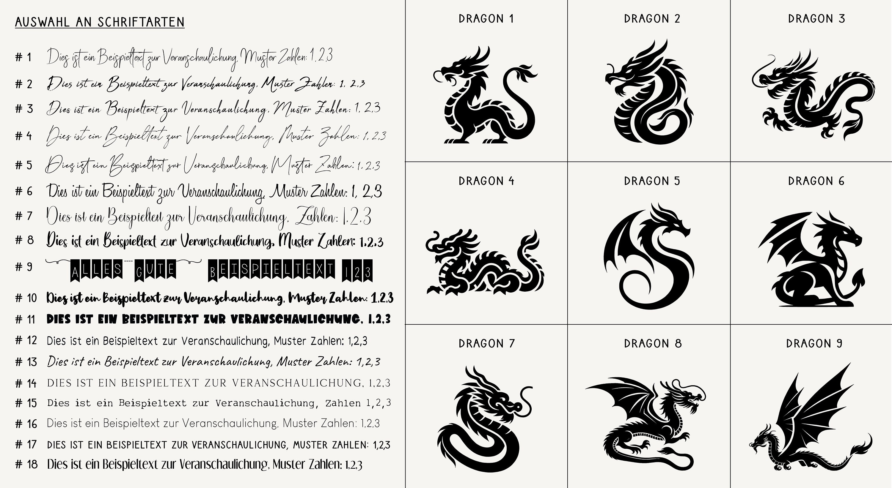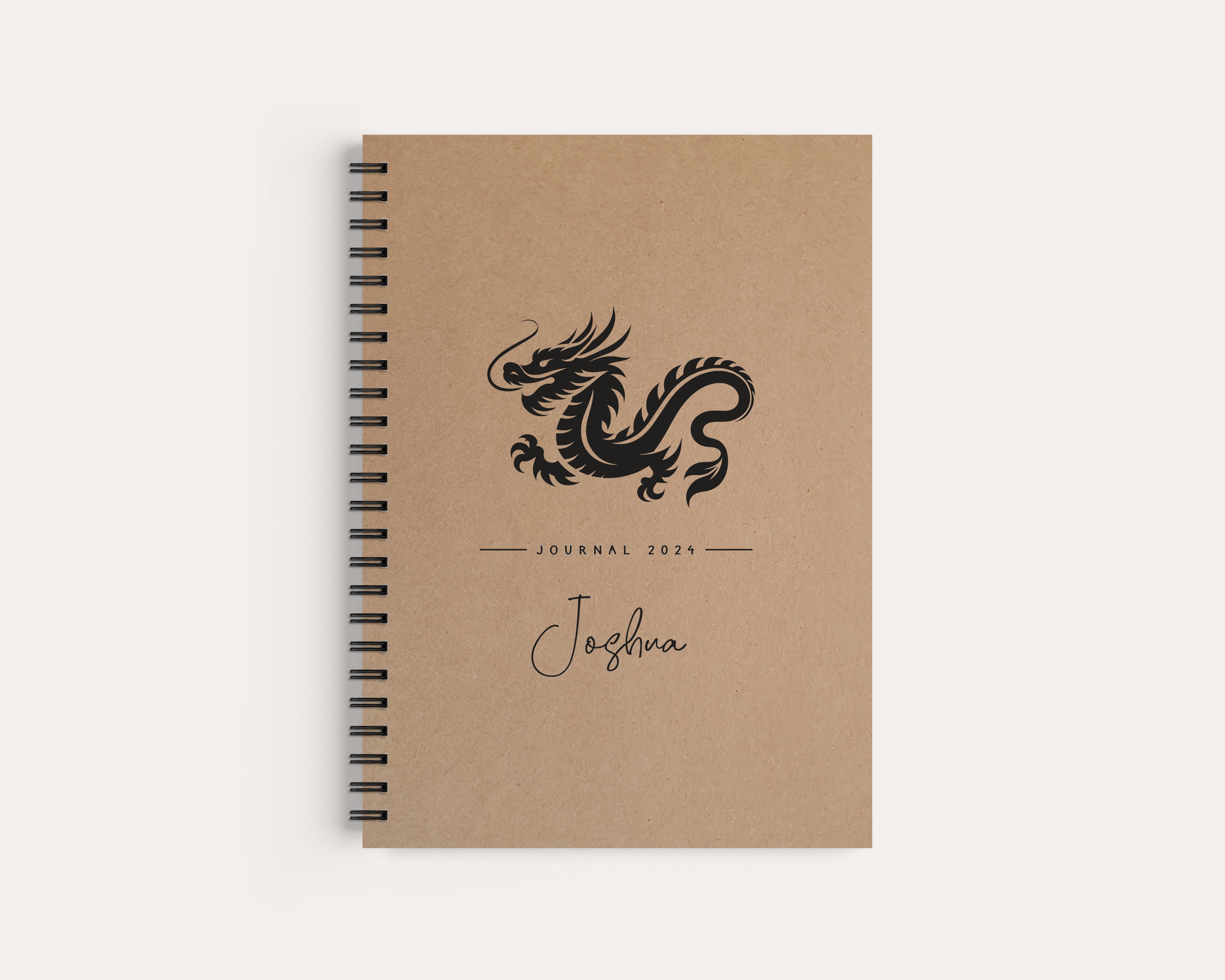 The cover is made of 300gsm cardstock in various colors and can be customized to your liking. You can see a selection of fonts and the dragon graphics in the last product image. This makes the book a personal, personalized gift—for family and friends, employees, as a journal, diary, for a birthday—or simply for yourself.