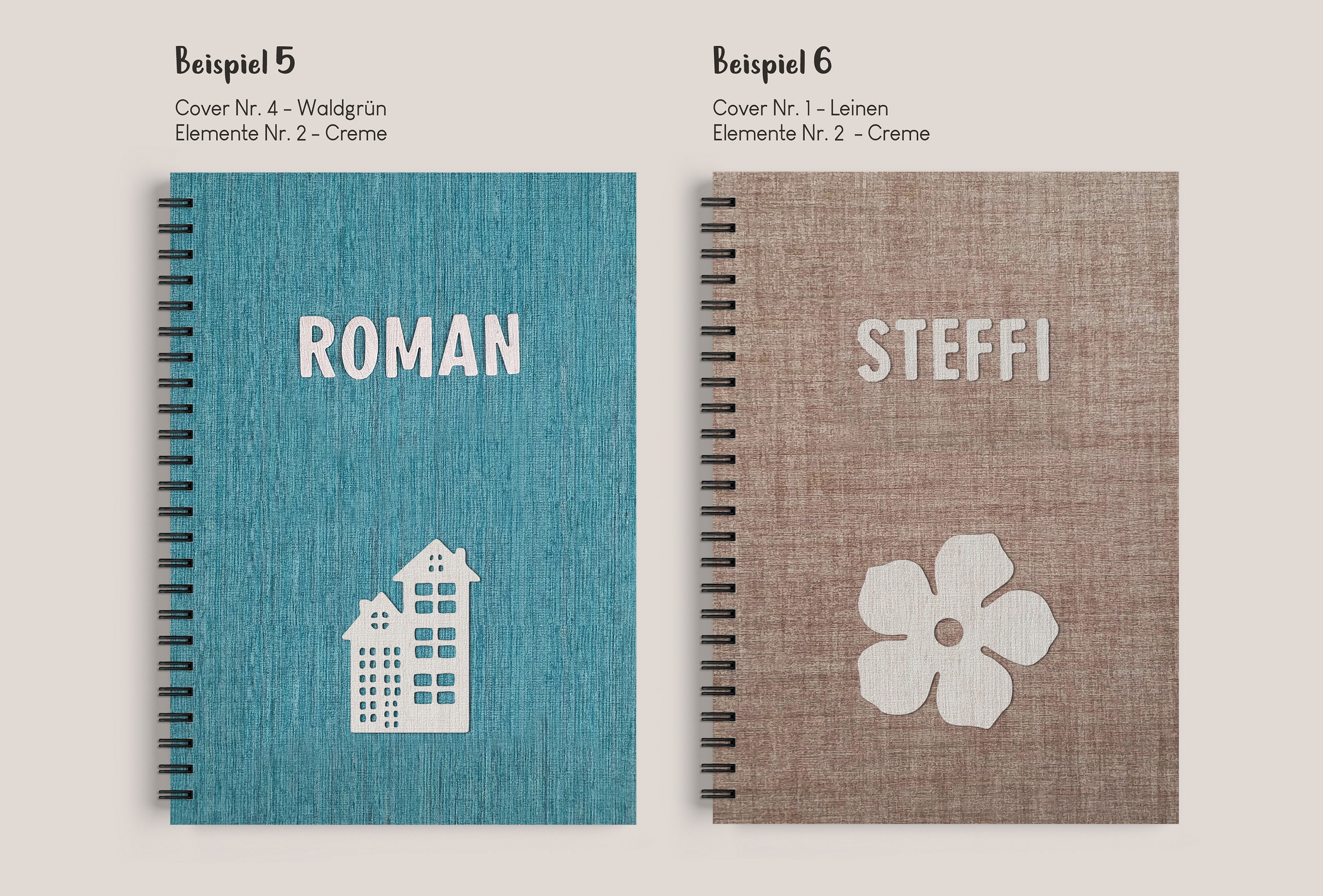 The letters, numbers, and graphics are punched out by hand, arranged, and hot-glued to the cover with a special adhesive. They are raised and tactile, giving the book a very high-quality and elegant appearance. Combine your favorite colors to create a truly unique book.