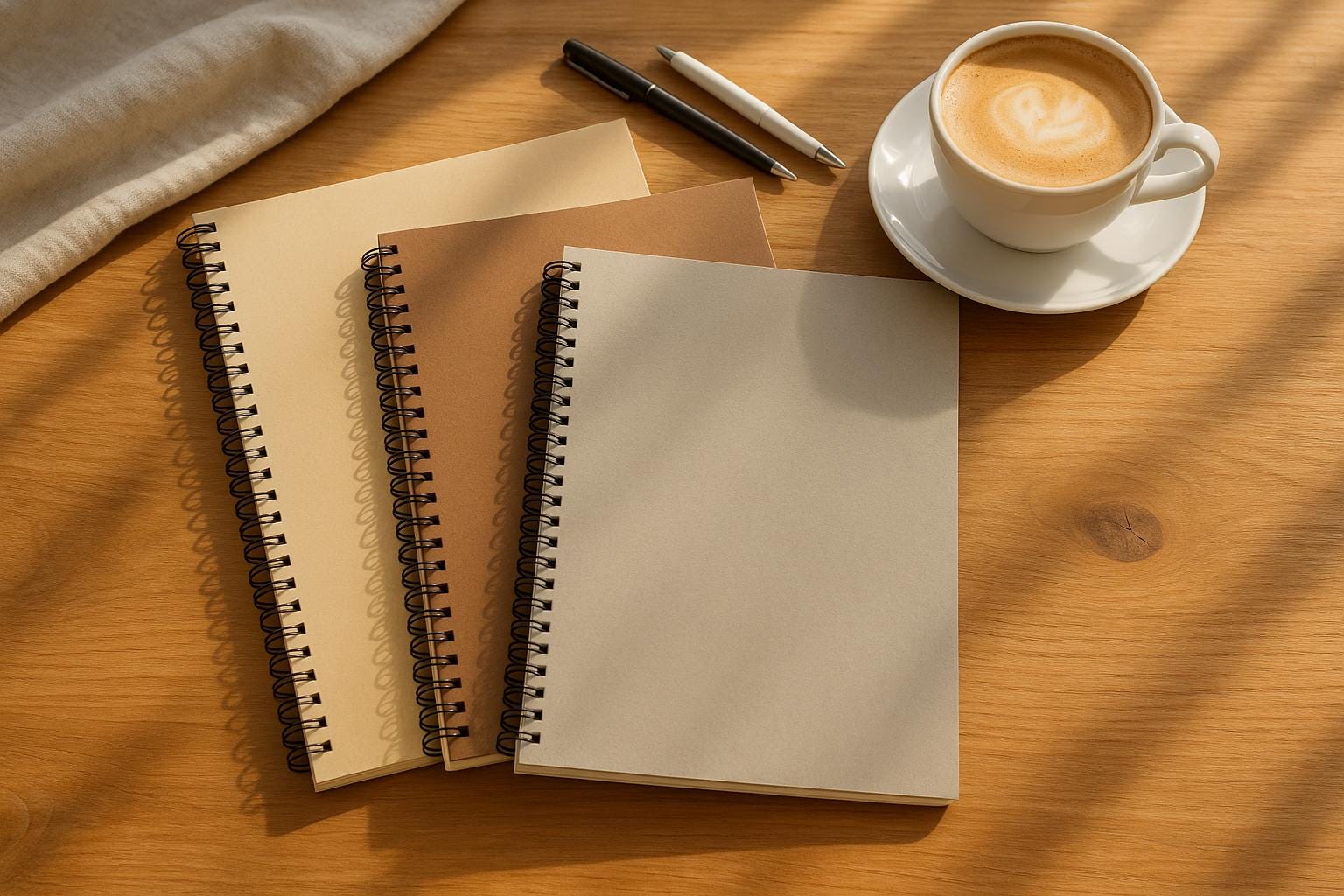 This ring-bound notebook is a timeless companion for your thoughts, ideas, and memories. With a cover available in kraft paper, off-white, or light gray, it has a minimalist, elegant, and versatile look.