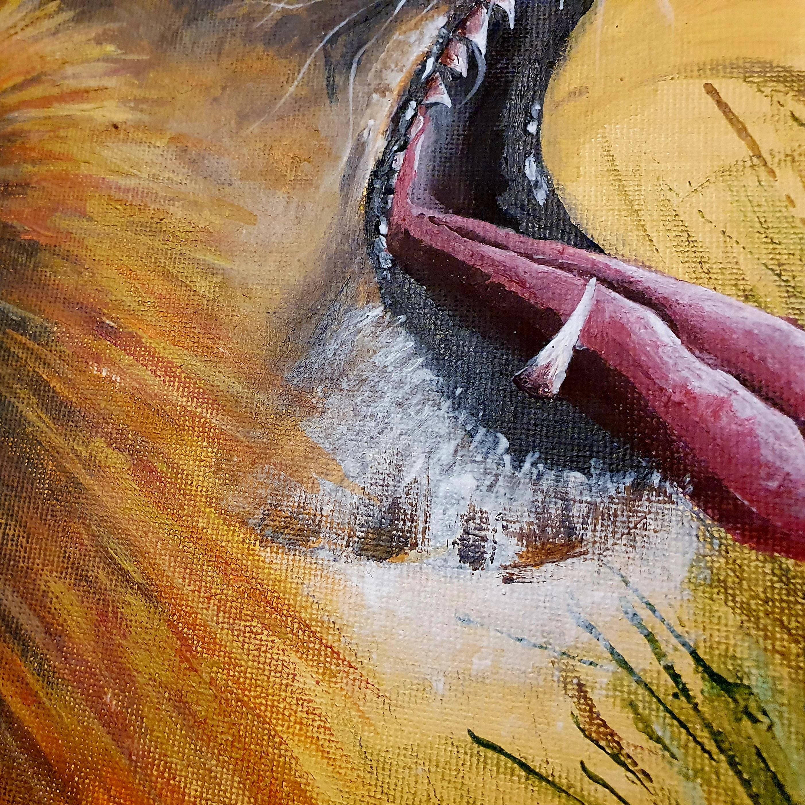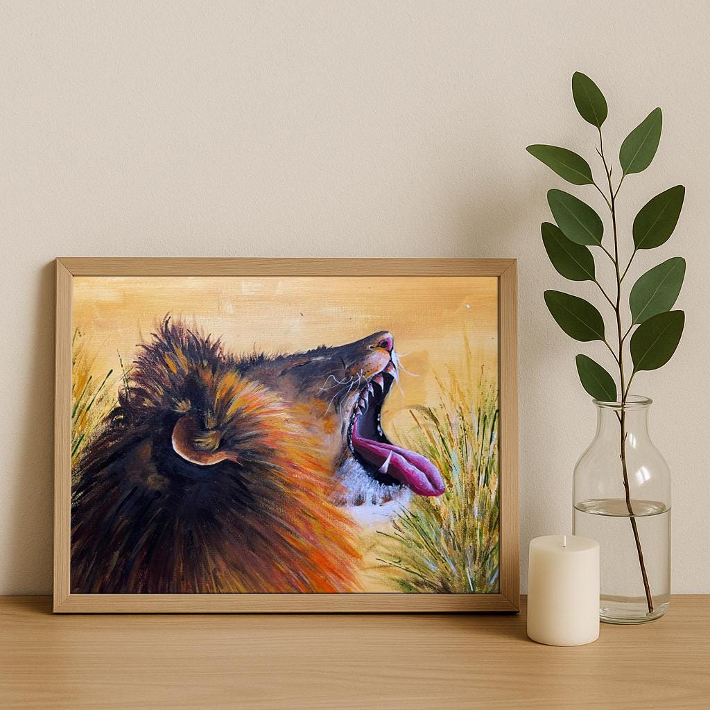 This impressive lion painting was created by the young artist Bozhidara Hofbauer (14 years old) with great dedication and attention to detail. Every brushstroke speaks of the courage, expressiveness, and profound intuition of this exceptionally talented young artist.