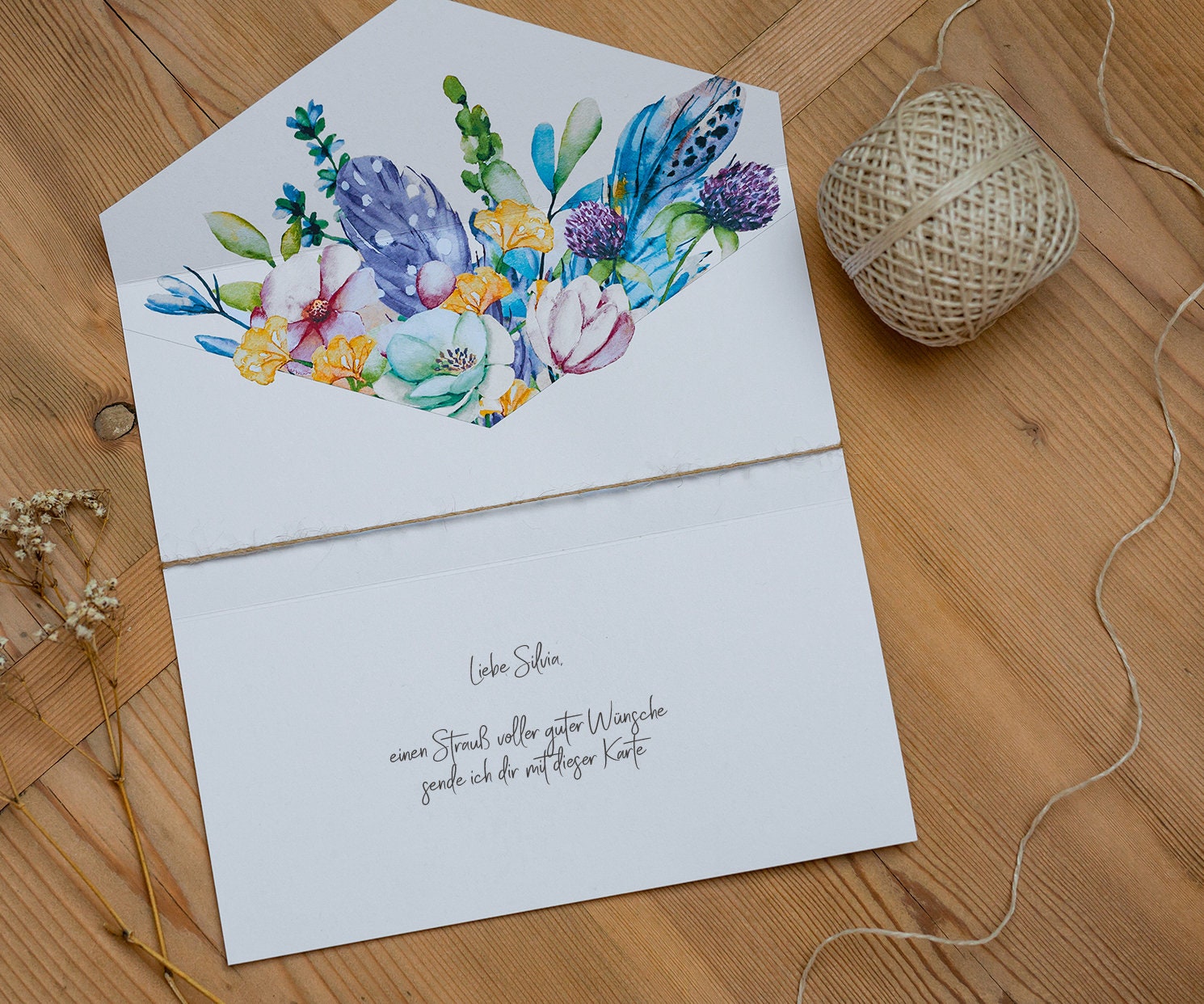 When you open the card, you are surprised to see a bouquet of flowers that appears to be inside the envelope.
